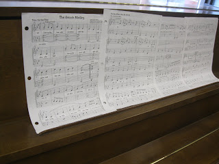 We find some sheet music on the piano left over from our choir practice.